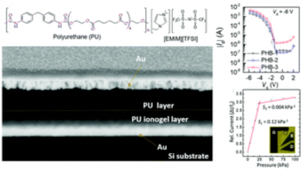 High-capacitance polyurethane ionogels for low-voltage operated organic transistors and pressure sensors